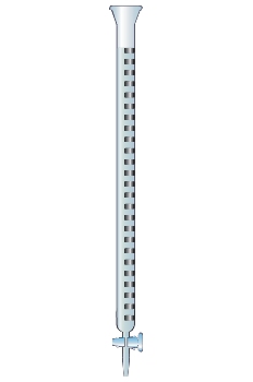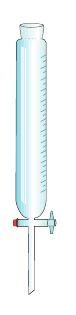 Peça de vidro cilíndrica graduada com uma torneira