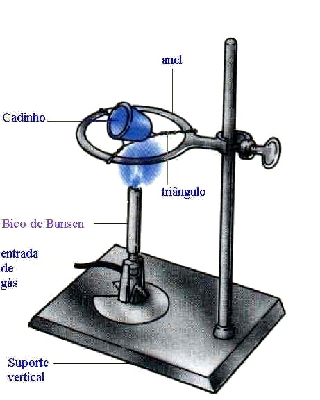 Queimador de gás utilizado como fonte de aquecimento no laboratório.